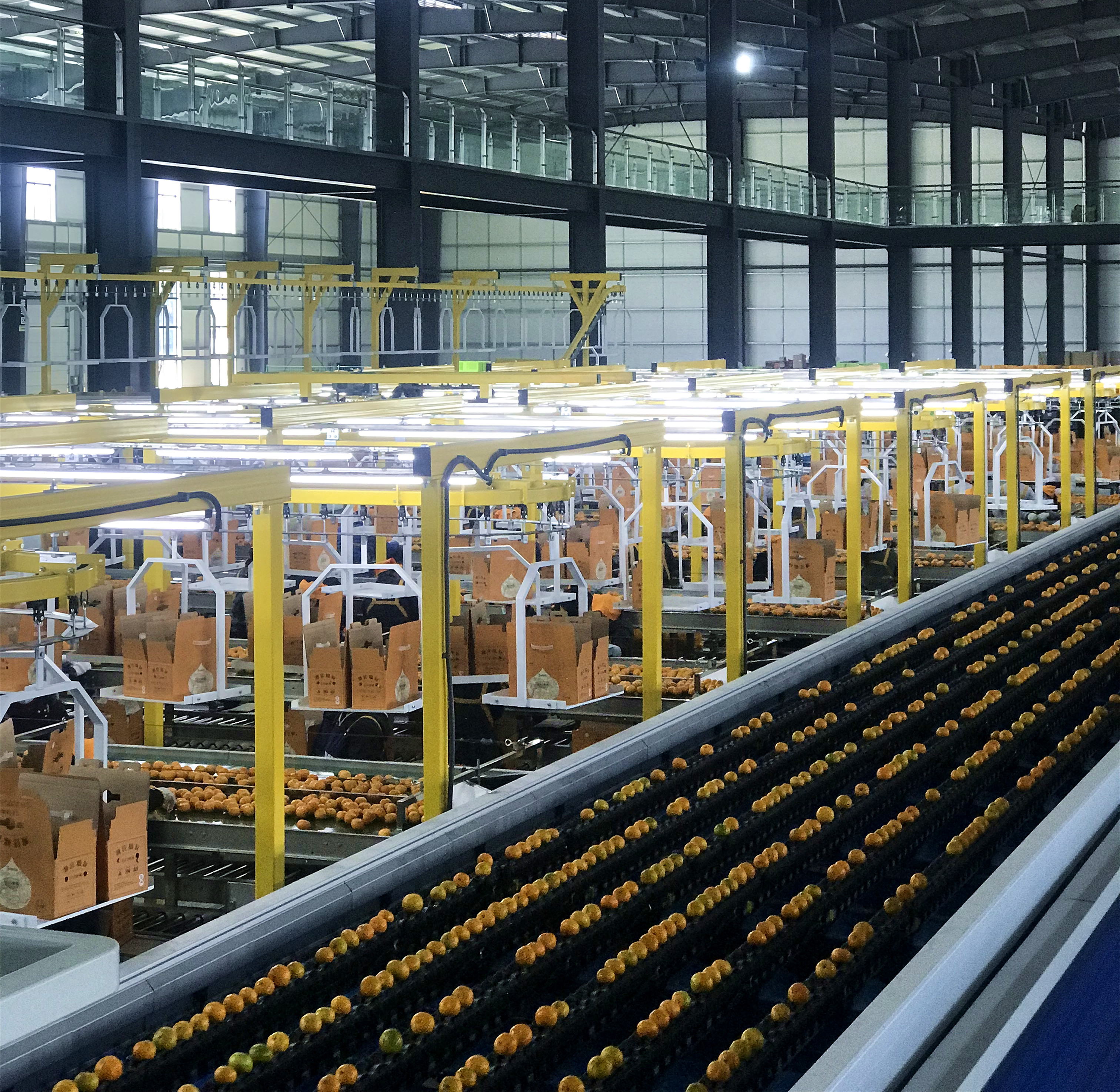 為此,湘佳股份投資1.2億元,引進了國內(nèi)首臺柑橘智能優(yōu)選“黑科技”——新西蘭康備科柑橘外觀和內(nèi)質(zhì)自動識別與檢測分選平臺,為石門柑橘提供智能檢測和優(yōu)選分級解決方案。 康備科智能檢測分選平臺提供的光源,能夠充足、均勻地照射到每一顆柑橘,結(jié)合其配備的傳感器和18臺高清相機,可以對通道上每一顆柑橘在1/10秒內(nèi),拍攝240張照片,果杯可以實現(xiàn)360°旋轉(zhuǎn)。